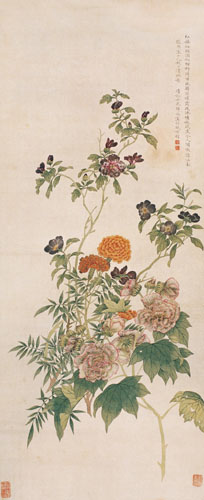 恽冰,清代。字清於,号浩如,别号“兰陵女史”,亦署“南兰女子”。武进人。诸生恽钟隆次女,恽南田的族玄孙女。是清代乾隆、嘉庆、道光年间深得家传的一位女画家。“善画花卉,得其家传,以没骨法著称,用粉精纯,作已辄题小诗,名著吴中,亦能诗”。乾隆初,江苏巡抚君继善以恽冰画进呈孝圣太后,乾隆帝题诗嘉奖。吴德旋《初月接续闻见录》中云:“时武进恽冰画,以没骨名。而江香(马扶曦女)以勾染名,江南人谓之‘双绝’”。