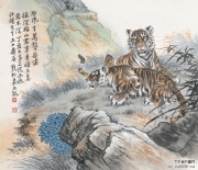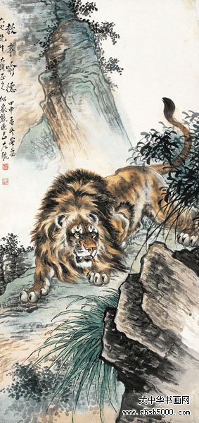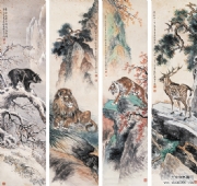 熊松泉(1884~1961),名庚昌,字松泉,以字行。江苏南京人,寓上海。十岁开始学习中国画,十八岁学西画。曾为上海中国画院画师、上海市文史馆馆员、中国美术家协会上海分会会员。 早年于上海、汉口等地以画舞台布景为业,兼擅雕塑,曾塑孙中山像,颇得好评。为海上题襟馆金石书画会会员,时与王一亭、张克龢、赵云壑等人切磋交往。1925年后与杨逸、汪仲山、钱瘦铁、汪声远等常活动于素月画社。与黄质(黄宾虹)、俞剑华、张善孖、马企周等活动于烂漫画社。1932年与张大千、张聿光、汪亚尘、陈定山等活动于中国画会并任理事。中年以后曾潜心研究实用工艺美术。擅绘山水、花鸟、人物,俱臻佳妙。能以左手作画,挥洒自如。尤擅走兽,享誉海内。所绘狮独称于时,与画虎驰名的张善孖齐名,人称“张虎熊狮”。传世作品有《猴》、《双狮》等图(均藏上海中国画院)。《九狮图》刊于1947年《中国美术年鉴》。